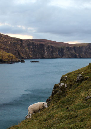 The Isle of Skye in the Highlands of Scotland is known for its rugged landscapes, picturesque fishing villages, and medieval castles. The largest and northernmost island in the Inner Hebrides archipelago, it has an indented coastline of peninsulas and narrow lochs, radiating out from a mountainous interior formed by volcanic rock. Skye is famously called out in the 19th-century Scottish song, "The Skye Boat Song." Fun fact about Scotland: there are more sheep than people.